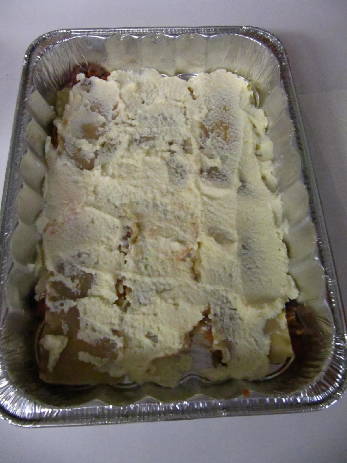 I made this for my friends who just had a baby and sent a can of crescent rolls too. Sorry, I don't have a finished picture, but I feel sure that you all have seen a pan of lasagna before. This recipe is adapted from the lasagna recipe in the Betty Crocker Cookbook. The first time I made the lasagna I started following the directions until I realized they had me making my own spaghetti sauce. I think it is much easier and faster to use a good store bought brand!!!